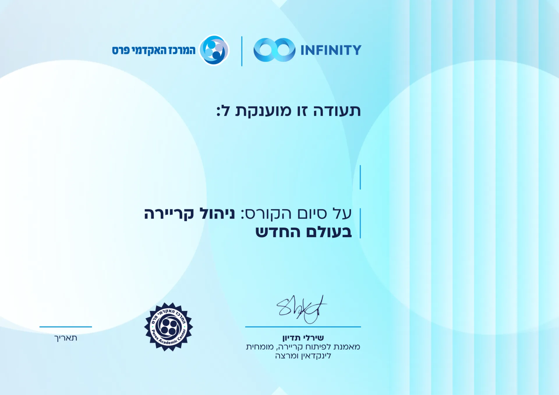 לאחר הקורס ניהול קריירה, נפתחות בפניך אפשרויות תעסוקה רחבות בכל תחום התואם לכישוריך. הקורס מקנה לך את ידע וכלים לשיווק עצמי, בניית קורות חיים ומציאת מקום עבודה באופן המיטבי ביותר